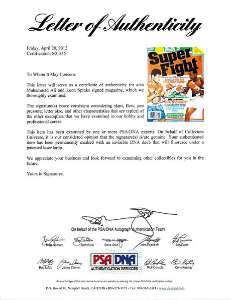 Very low stock (1 unit)$539Unit price /UnavailableMuhammad Ali & Leon Spinks Autographed Magazine Cover PSA/DNA #S01555