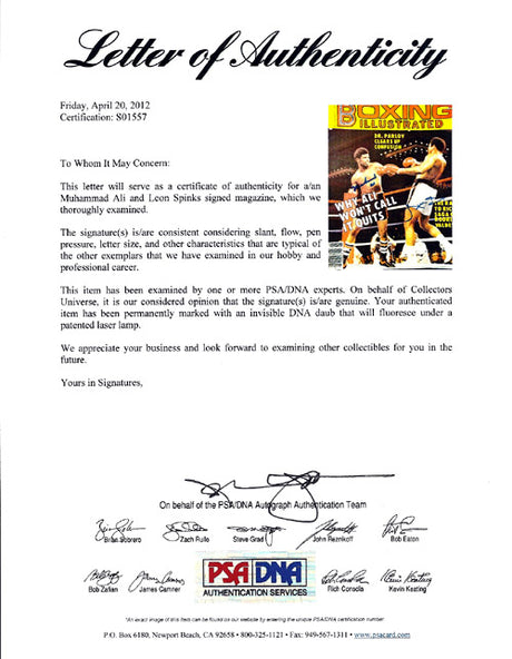 Authenticated Muhammad Ali Autographs and Memorabilia