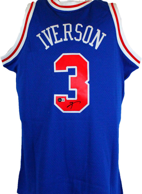 Allen Iverson Singed 76ers Blue M&N Hardwood Classic Swingman Jersey-BA W Holo