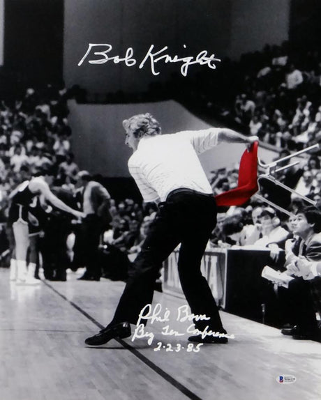 Bob Knight Phil Bova Signed 16x20 Red Chair Photo w/ Big Ten Beckett Auth *White