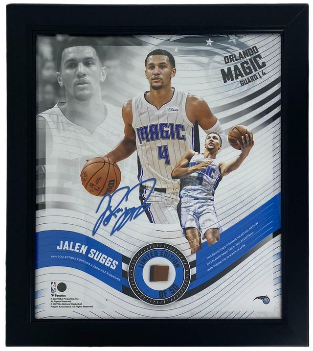 Elevate your Orlando Magic collection with this Jalen Suggs Framed 15" x 17" Game-Used Basketball Collage. A must-have for dedicated fans, this limited-edition piece (only 50 made) features a genuine game-used basketball, making it a unique addition to any memorabilia display.