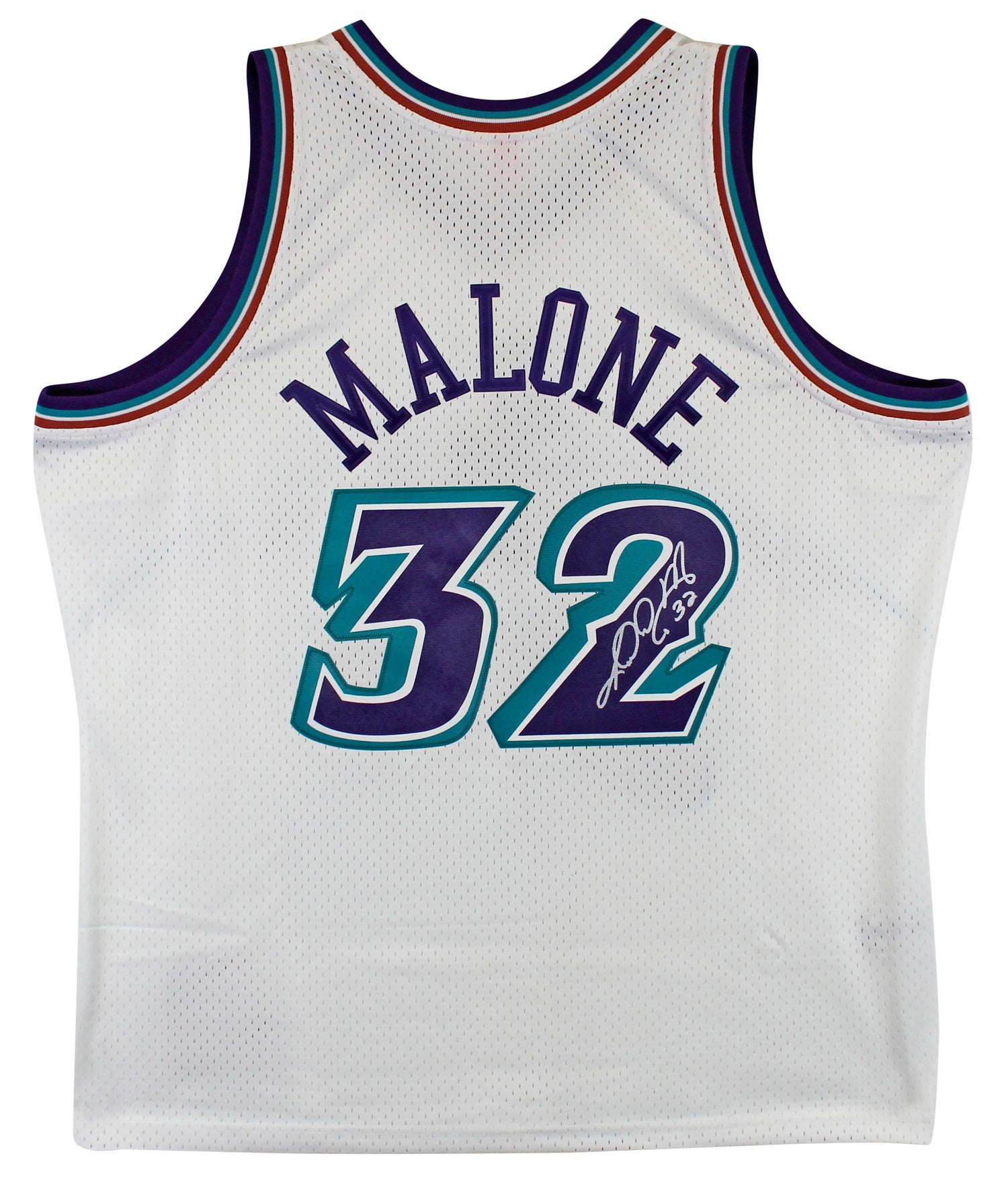 Jazz Karl Malone Signed 1996-97 White Mitchell & Ness Swingman Jersey BAS Wit