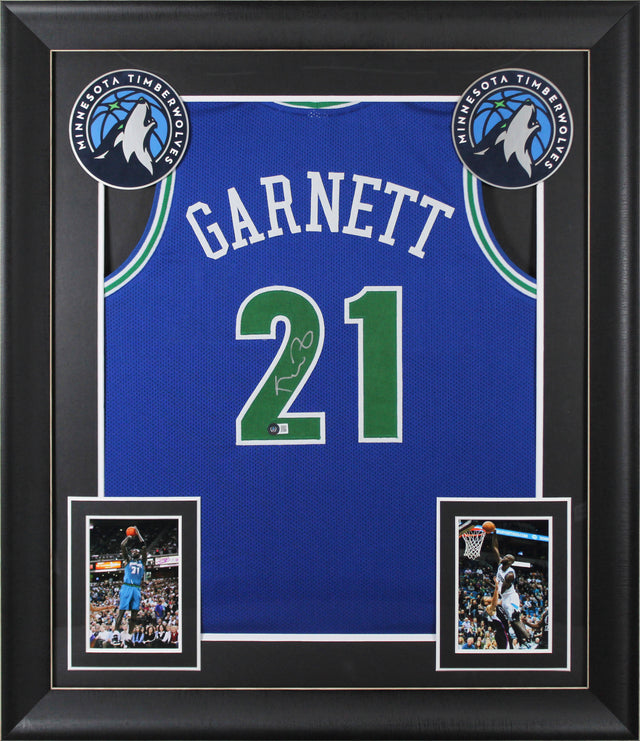 Kevin Garnett Authentic Signed Blue Throwback Pro Style Framed Jersey BAS Wit