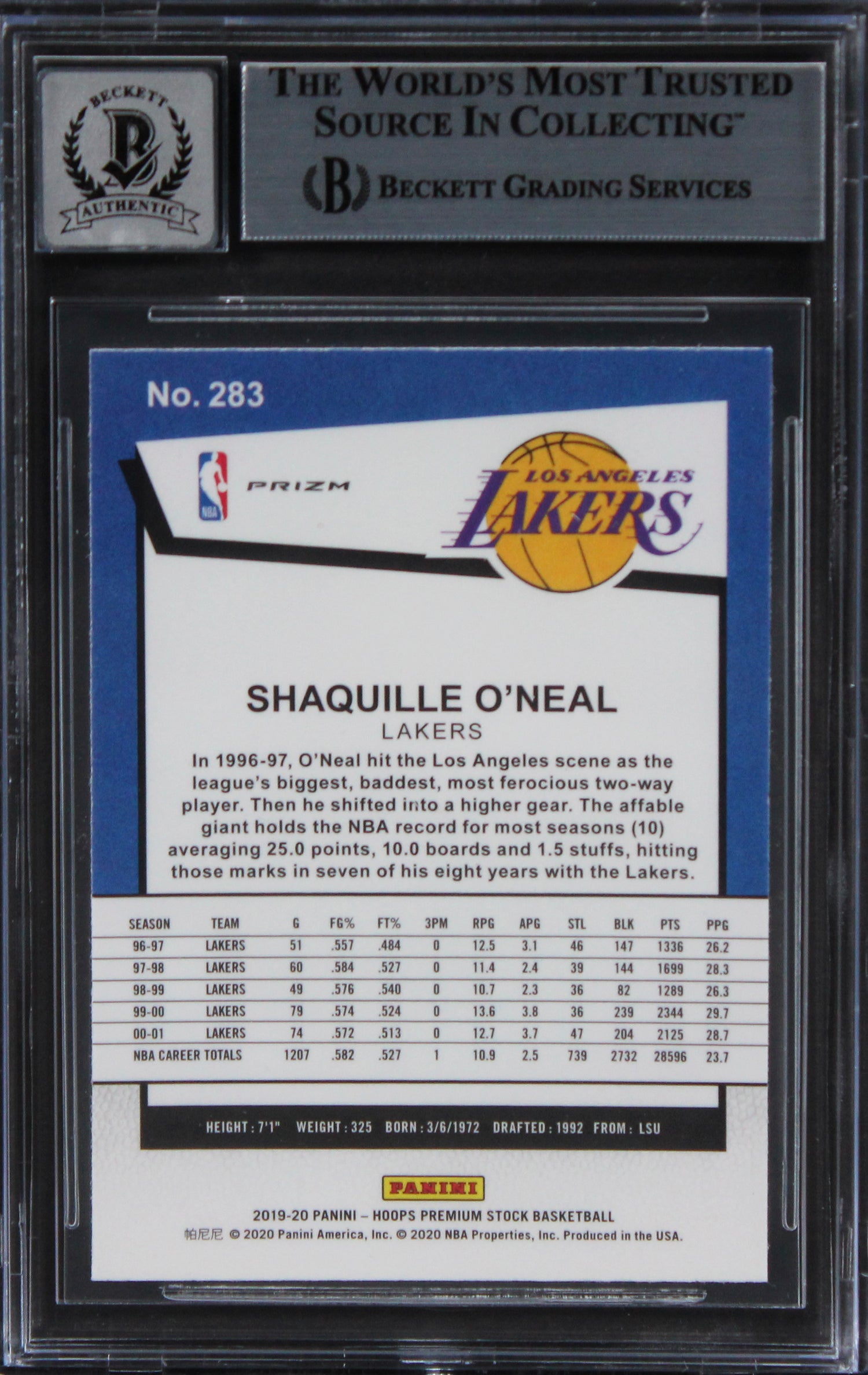 Lakers Shaquille O'Neal Signed 2019 Hoops PS Prizms Flash #283 Auto 10 BAS Slab