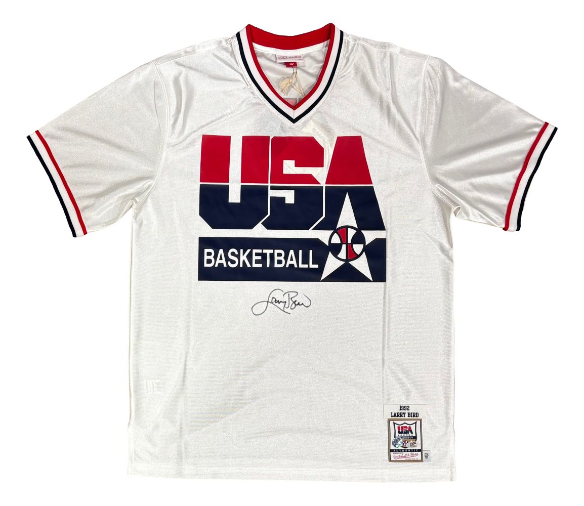 Own a legendary piece of basketball history with this Larry Bird signed USA Mitchell & Ness authentic warm-up shooting shirt. This rare collectible celebrates one of the greatest players in NBA history, showcasing Bird's legacy both as a Boston Celtics icon and as a member of the famed USA Basketball team. This warm-up shirt is an ideal addition for dedicated collectors and fans of 1980s basketball greatness.