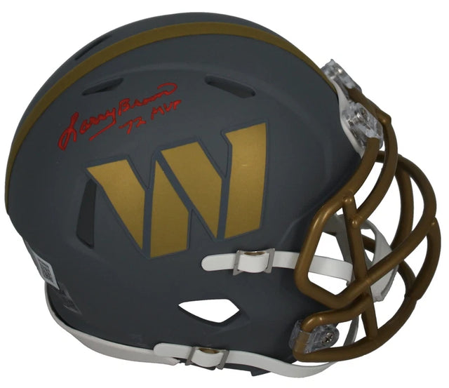 Larry Brown Autographed/Inscribed "72 MVP" Washington Commanders Slate Speed Mini Helmet Beckett Witnessed
