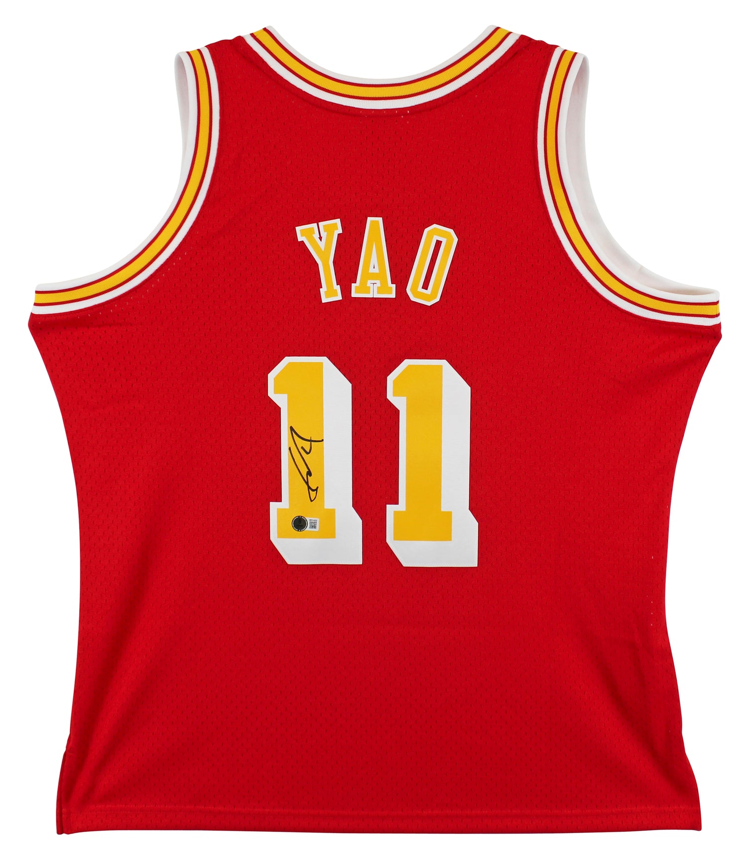 Rockets Yao Ming Signed Red M&N 2004-05 HWC Swingman Jersey BAS Witnessed