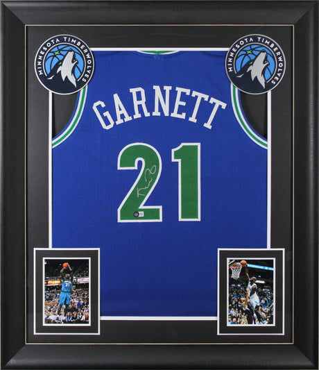 Kevin Garnett Authentic Signed Blue Throwback Pro Style Framed Jersey BAS Wit