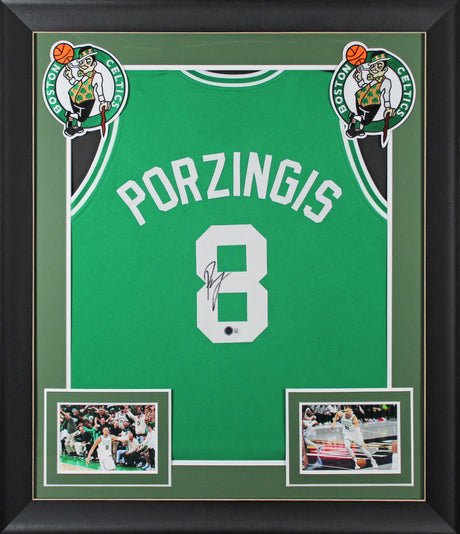 Kristaps Porzingis Authentic Signed Green Pro Style Framed Jersey BAS Witnessed