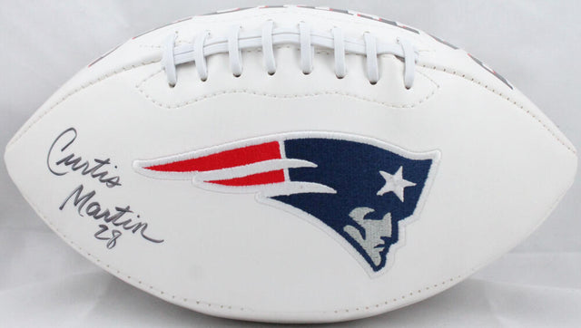 Own a piece of football history with this hand-signed Curtis Martin New England Patriots logo football. A must-have for collectors and die-hard fans, this autographed football celebrates the legacy of one of the Patriots' all-time greats.