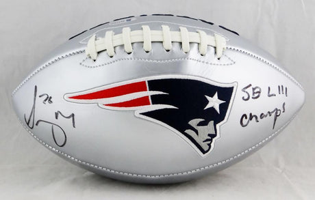 Sony Michel Signed New England Patriots Silver Logo Football w/ SB Champs-Becket