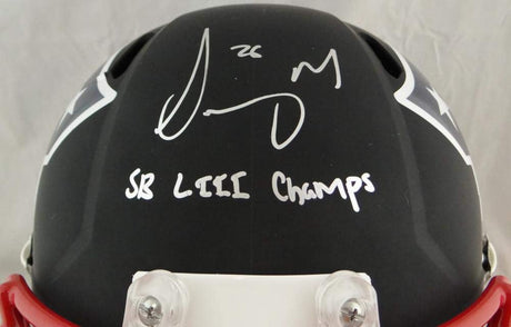 Sony Michel Signed Patriots F/S Flat Black Helmet W/ SB Champs- Beckett Auth *To