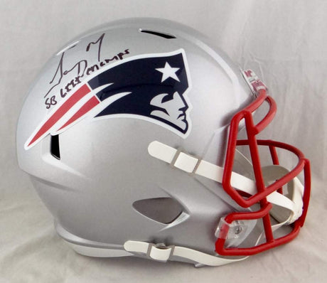 Randy Moss Autographed New England Patriots F/S Speed Authentic Helmet w/ Insc *