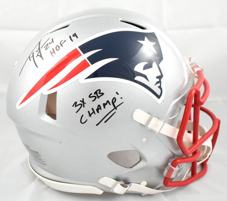 Very low stock (1 unit)$559Unit price /UnavailableTy Law Autographed New England Patriots F/S Speed Helmet w/3 Insc.-BeckettW Holo
