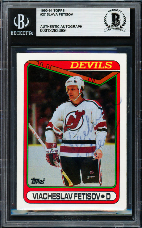 Viacheslav Fetisov Autographed 1990-91 Topps Rookie Card #27 New Jersey Devils Beckett BAS #18283389