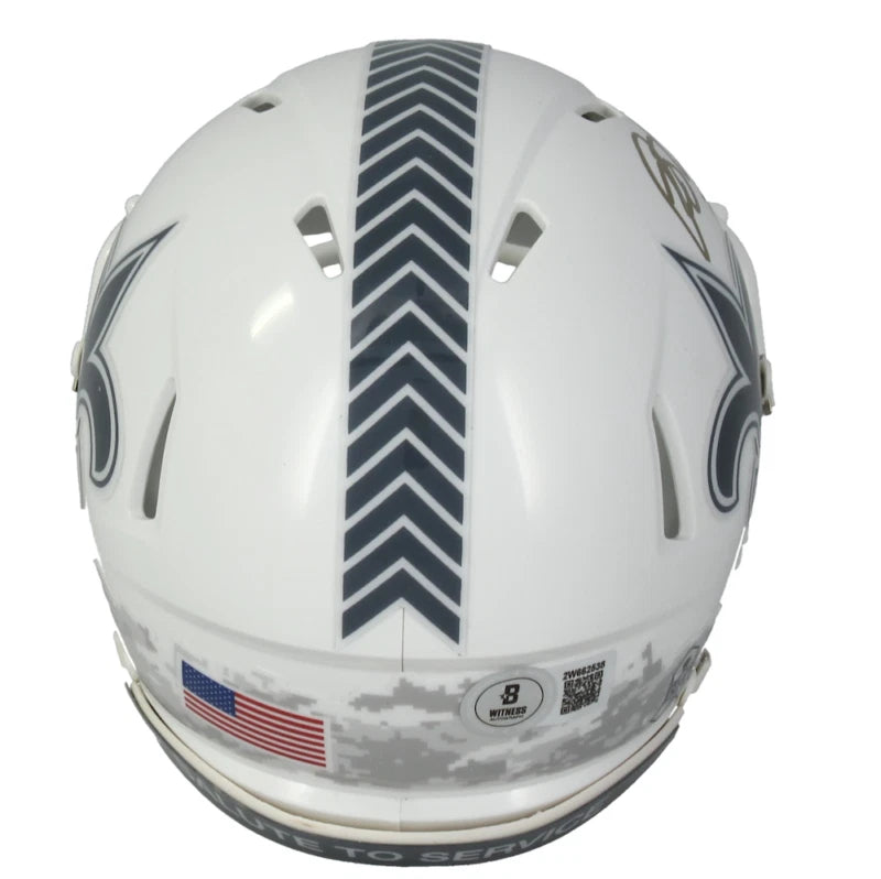Rashid Shaheed Autographed (in Gold) New Orleans Saints 2024 Salute to Service Speed Mini Helmet Beckett Witnessed