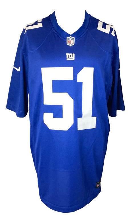 Wear your Giants pride or display it on the wall with our collection of 38 authenticated signed jerseys. Autographed by franchise icons like Lawrence Taylor, Eli Manning, Phil Simms, and Michael Strahan, these jerseys represent the pinnacle of Big Blue memorabilia. Every jersey ships with a COA and tamper-evident hologram.