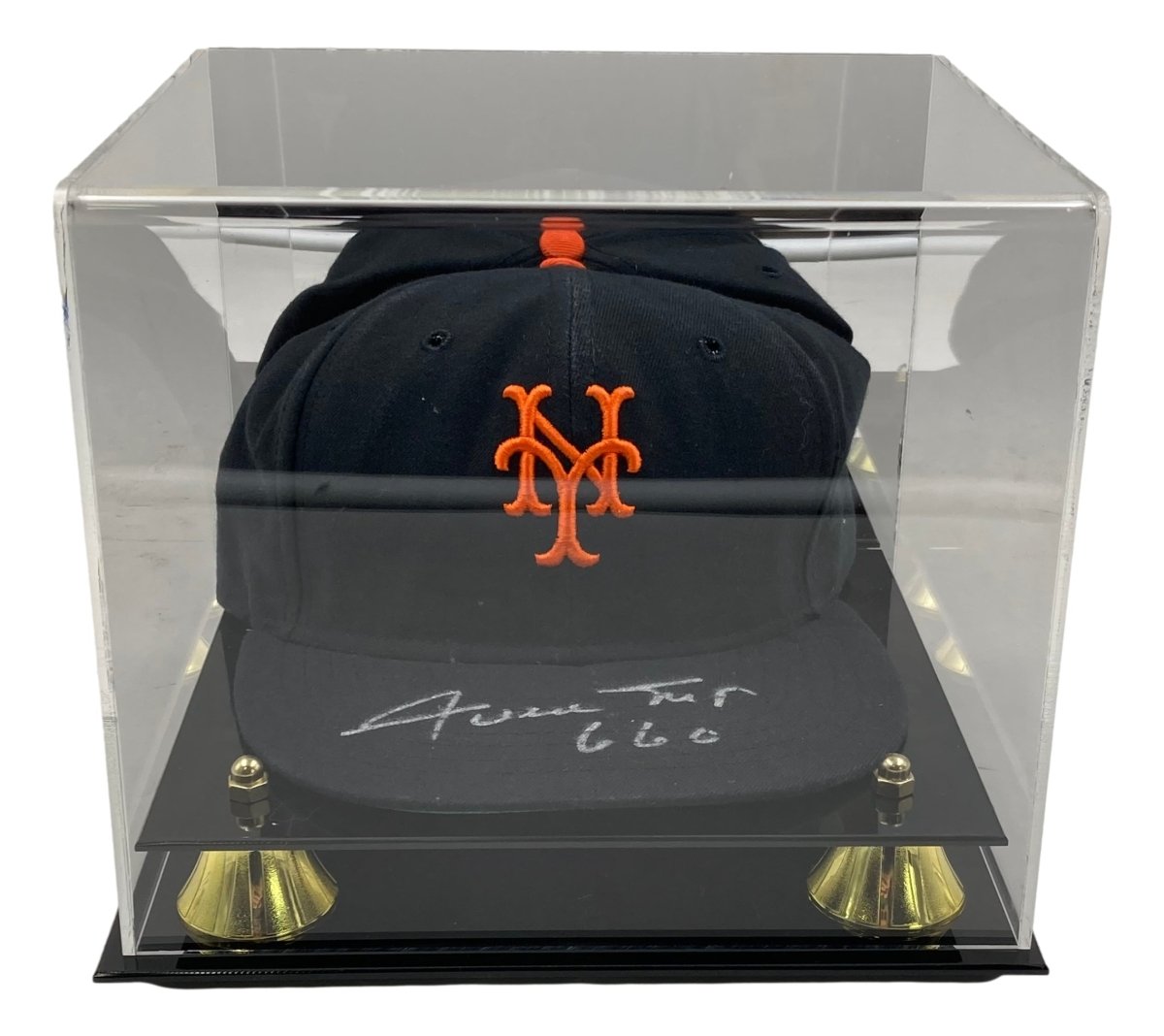 Own a piece of baseball history with this Willie Mays signed New York Giants Cooperstown Collection baseball hat, inscribed with “660” to commemorate his legendary career home run total. This rare collectible has been hand-signed by Hall of Famer Willie Mays and is authenticated by PSA with a matching hologram and certificate of authenticity. This signed hat is a must-have for serious collectors and fans of the game, celebrating Mays' time with the New York Giants before their move to San Francisco. A timeless tribute to one of baseball’s greatest players, this cap is perfect for display. Product Features: