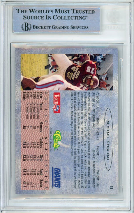 1993 Classic #58 Michael Strahan RC New York Giants BGS Autograph 10