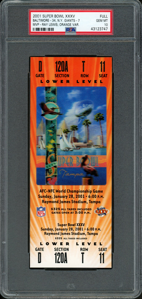Very low stock (1 unit)$319Unit price /UnavailableSuper Bowl XXXV Unsigned Ticket Baltimore Ravens vs. New York Giants PSA 10 #43123747