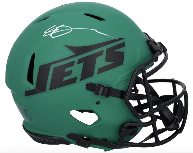 This authentic speed helmet has been personally hand-signed by Ahmad "Sauce" Gardner, the standout cornerback for the New York Jets. Known for his lock-down coverage and dynamic playmaking ability, Sauce Gardner made an immediate impact as a first-round draft pick in the 2022 NFL Draft and has quickly become one of the NFL's elite defenders. This collectible is more than just a helmet—it's a bold tribute to the rising legacy of a gridiron star. Officially licensed by the National Football League (NFL), this helmet is a must-have for Jets fans and collectors of signed sports memorabilia. Each piece comes with authentic documentation to ensure you are getting a genuine piece of NFL history.
