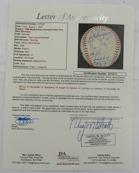 1986 World Series Champion New York Mets Signed Auto Baseball JSA LOA ZZ10213