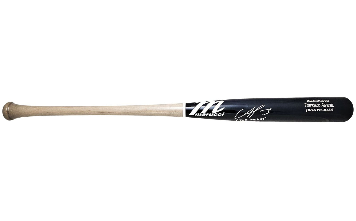 Own a piece of baseball history with this Francisco Alvarez signed Marucci game model baseball bat, personally inscribed with his "MLB Debut 9-30-22" to honor his first official appearance in Major League Baseball. A rising star catcher for the New York Mets, Alvarez has quickly earned attention for his powerful hitting and solid defense, making this collectible bat a must-have for fans and collectors alike. Authenticated by Beckett, one of the most trusted names in memorabilia verification, this bat is both a tribute to a promising career and an investment in the future of the sport.