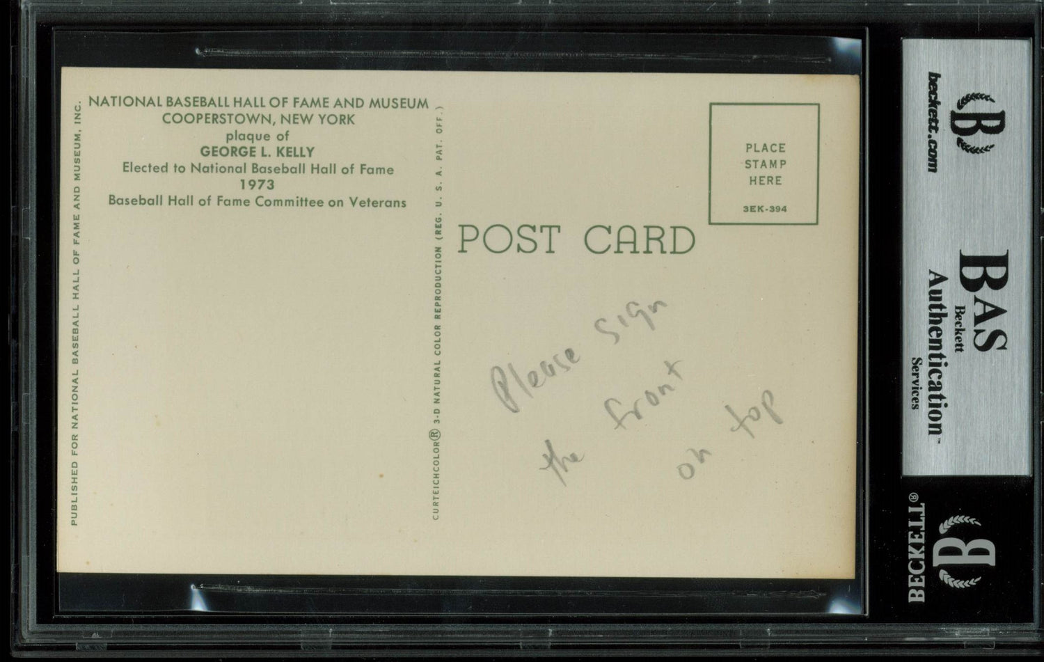 Mets George Kelly Authentic Signed 3.5x5.5 HOF Plaque Postcard BAS Slabbed