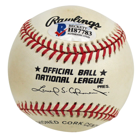 Very low stock (1 unit)$109Unit price /Unavailable Bob Miller Autographed Official NL Baseball Cincinnati Reds, New York Mets Beckett BAS QR #BM25790