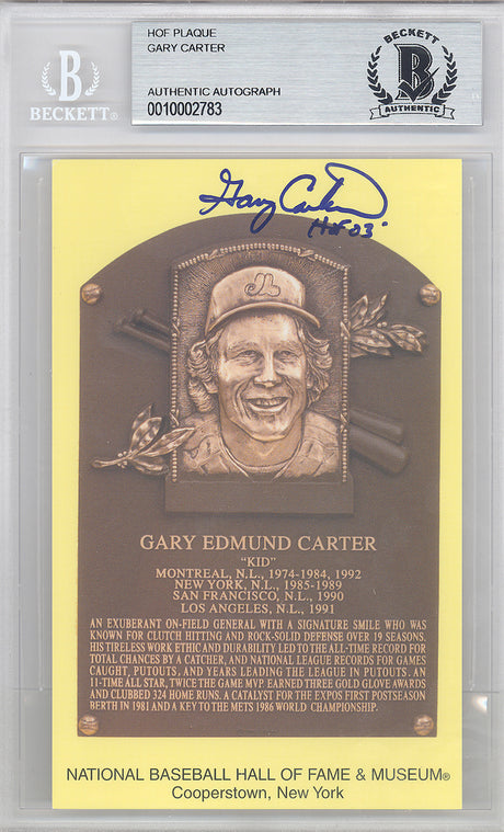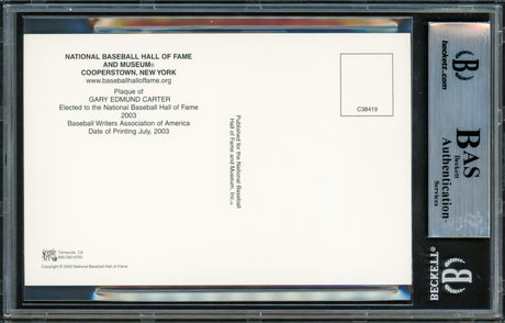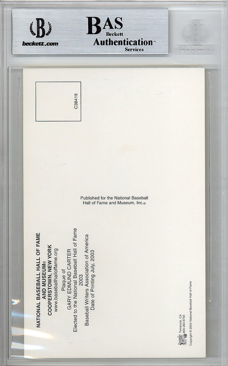 Gary Carter Autographed HOF Plaque Postcard Expos, Mets "HOF 03" Beckett BAS STOCK #128122