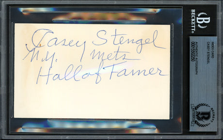 Casey Stengel Autographed 3x5 Index Card New York Mets "Hall of Famer" Beckett BAS #15502250