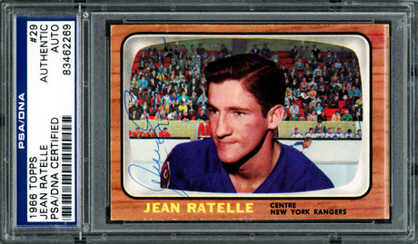 Very low stock (1 unit)$299Unit price /UnavailableJean Ratelle Autographed 1966 Topps Card #29 New York Rangers PSA/DNA #83462269