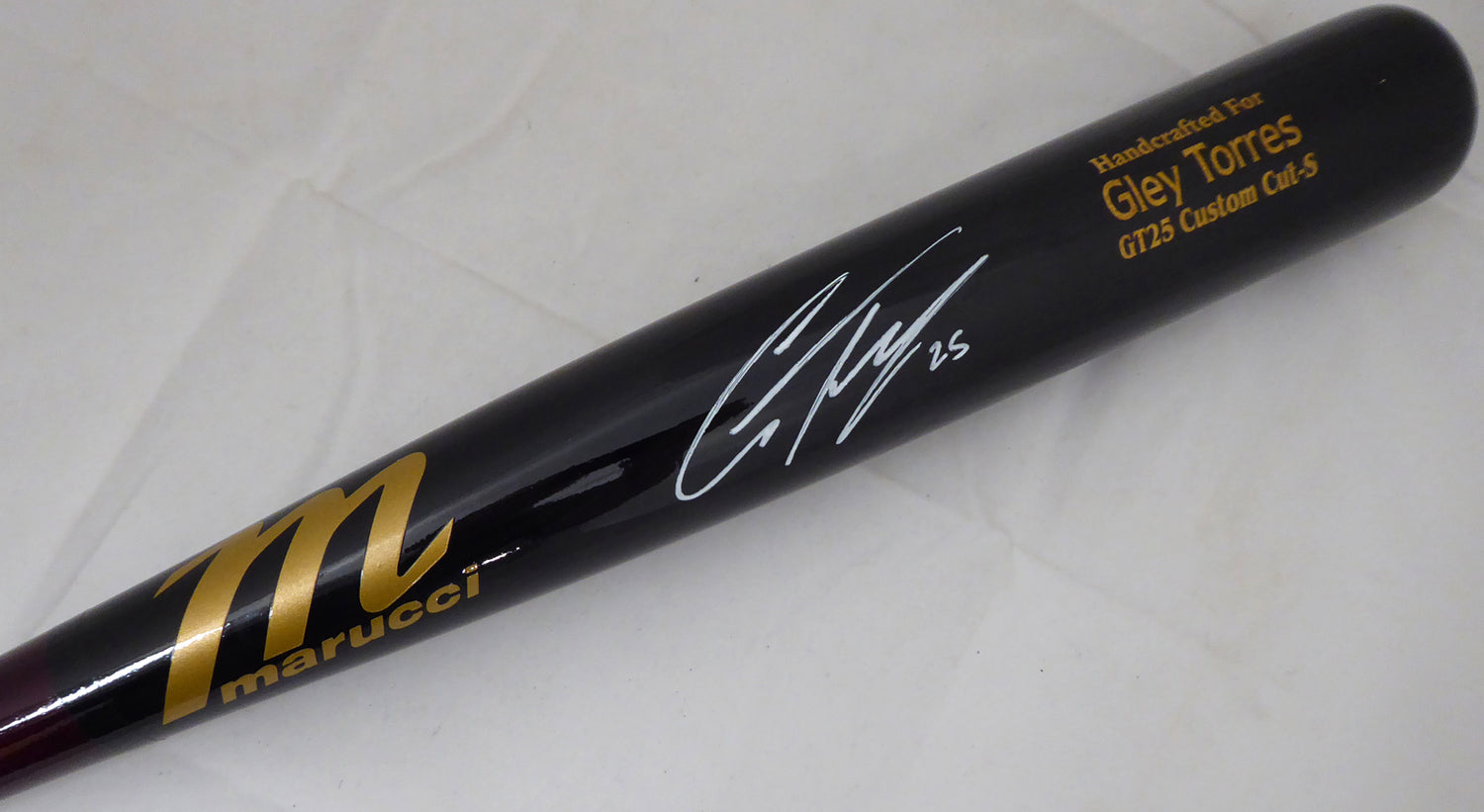 Elevate your memorabilia collection with this Game Model Marucci Baseball Bat, hand-signed by Gleyber Torres. A rising star for the New York Yankees, Torres has solidified himself as one of baseball’s most exciting young talents. This bat is an exceptional piece for fans and collectors alike, embodying the power and precision that define his career.