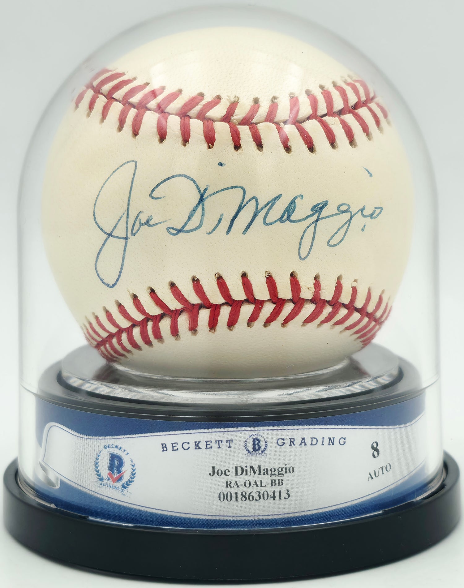 This is a rare opportunity to own a piece of baseball history — a hand-signed Joe DiMaggio baseball, authenticated and graded by one of the most trusted names in sports memorabilia. Known as "The Yankee Clipper," Joe DiMaggio was a legendary figure in Major League Baseball, spending his entire career with the New York Yankees and earning his place in the Hall of Fame. This collectible captures a moment of that enduring legacy and has been professionally authenticated for quality and authenticity.