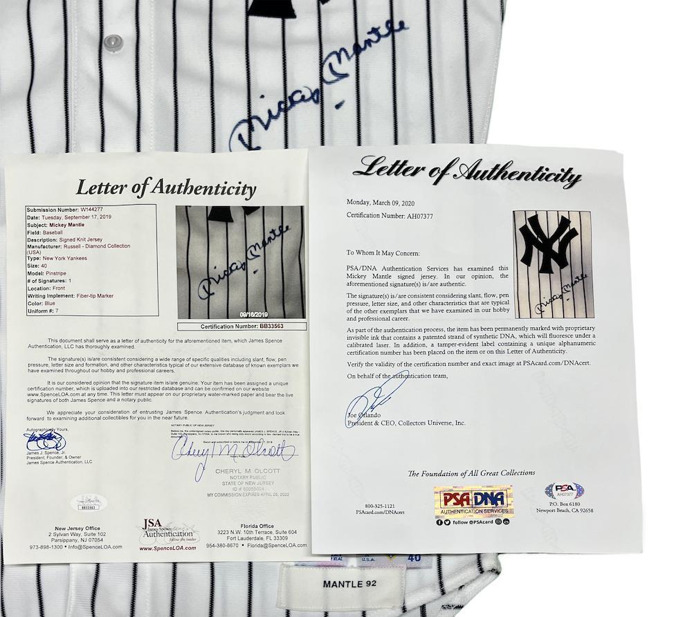 This New York Yankees Old Timers Game jersey is a must-have for collectors and baseball fans alike. Personally hand-signed by the legendary Mickey Mantle, this Russell Athletic Diamond Collection jersey is a rare piece of memorabilia celebrating one of the greatest players in baseball history. Authenticated by JSA and PSA/DNA, it comes with an official hologram and letter of authenticity, ensuring its legitimacy for serious collectors.