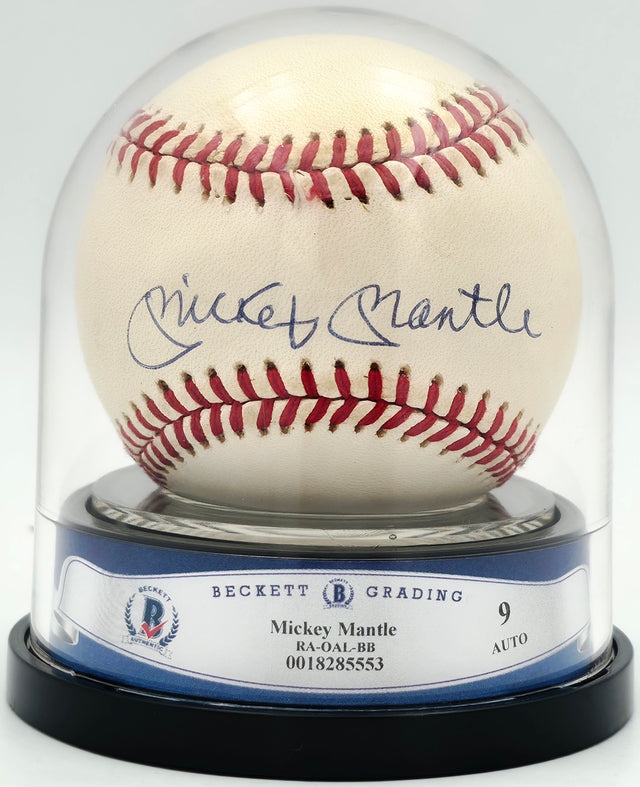 Mickey Mantle Autographed Official AL Baseball New York Yankees Auto Grade Mint 9 PSA/DNA & Beckett BAS #18285553