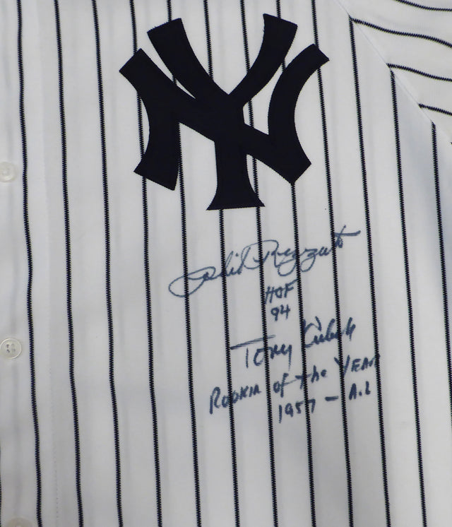 New York Yankees Phil Rizzuto & Tony Kubek Autographed White Russell Jersey Size XL "HOF 94" & "Rookie Of The Year 1957 - AL" Beckett BAS QR #BJ04164