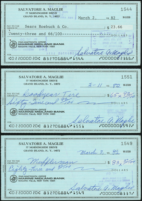 Sal Maglie Autographed 3x6 Check Brooklyn Dodgers, New York Yankees Lot Of 30 SKU #147841