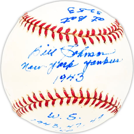 Bill Johnson Autographed Official AL Baseball New York Yankees "Stat Ball" Beckett BAS QR #BM25325