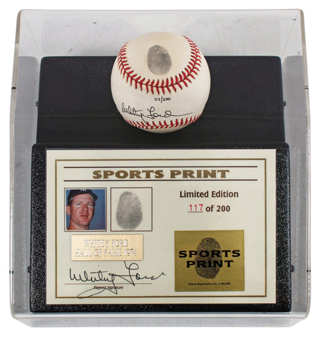 Yankees Whitey Ford Signed Thumbprint Baseball LE #'d/200 w/ Display Case BAS