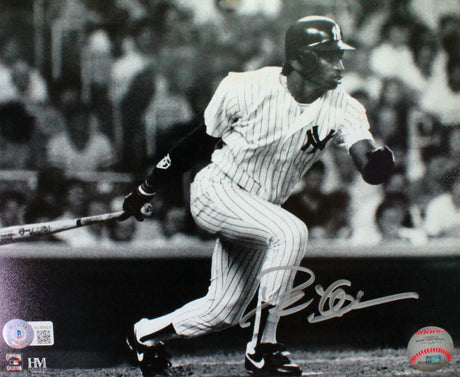 Deion Sanders Autographed NY Yankees 8x10 B&W Swinging Photo-Beckett W Holo