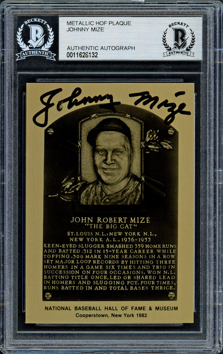 Low stock (4 units)$519Unit price /UnavailableJohnny Mize Autographed 1982 Metallic HOF Plaque Card New York Yankees Beckett BAS #11628132