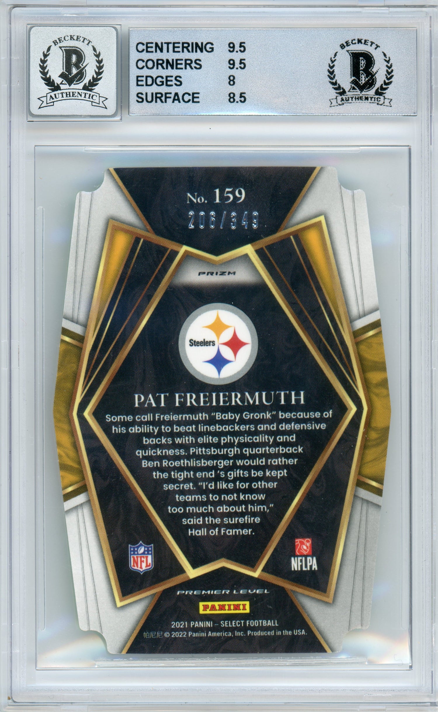 2021 Select Prizm Neon Green Die Cut #159 Pat Freiermuth RC 206/349 BGS 8.5 Auto 10