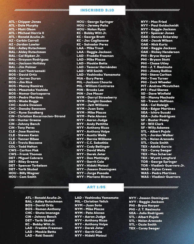 - Includes names from past and present — from Hall of Famers to current All-Stars
