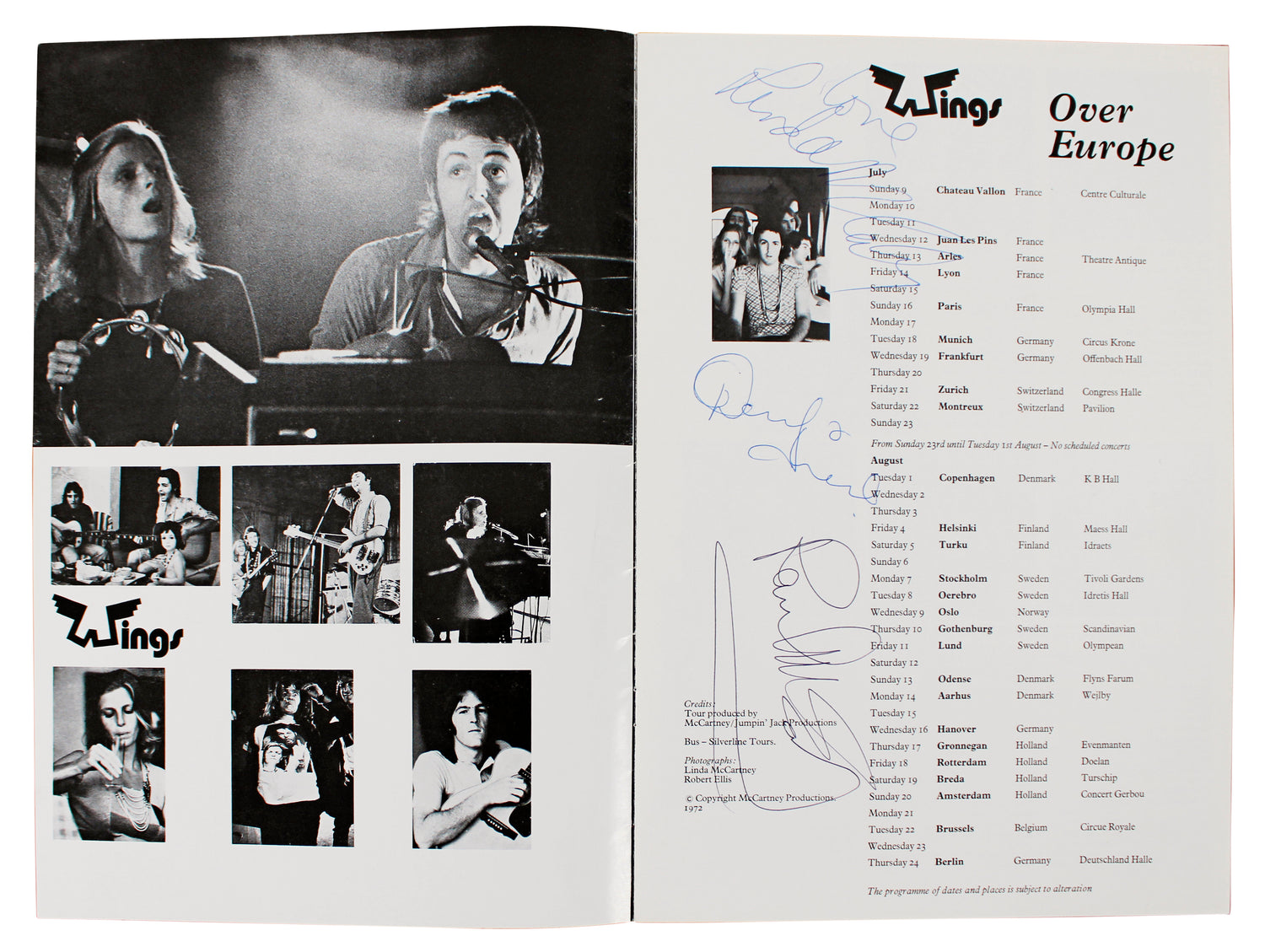 (3) Linda & Paul McCartney, Denny Lane Signed Wings Over Europe Tour Program BAS