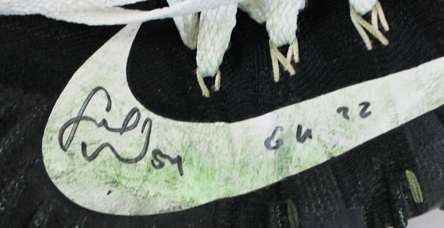 Own a rare piece of San Francisco 49ers history with these Autographed Game Worn Nike Alpha Menace Size 12 Cleats, personally signed by Fred Warner, one of the elite linebackers in the NFL. Each cleat is inscribed with “GU 22,” marking it as Game Used in 2022, making this pair a meaningful addition to any serious collection of 49ers or NFL memorabilia. Fred Warner, a defensive cornerstone and Pro Bowler, played a critical role in leading San Francisco's dynamic defense—these cleats represent more than gear, they capture a moment in a game where greatness was on display. Authentication is backed by a Beckett Authentication Services Certificate of Authenticity (COA) and hologram, ensuring 100% legitimacy for collectors and investors alike.
