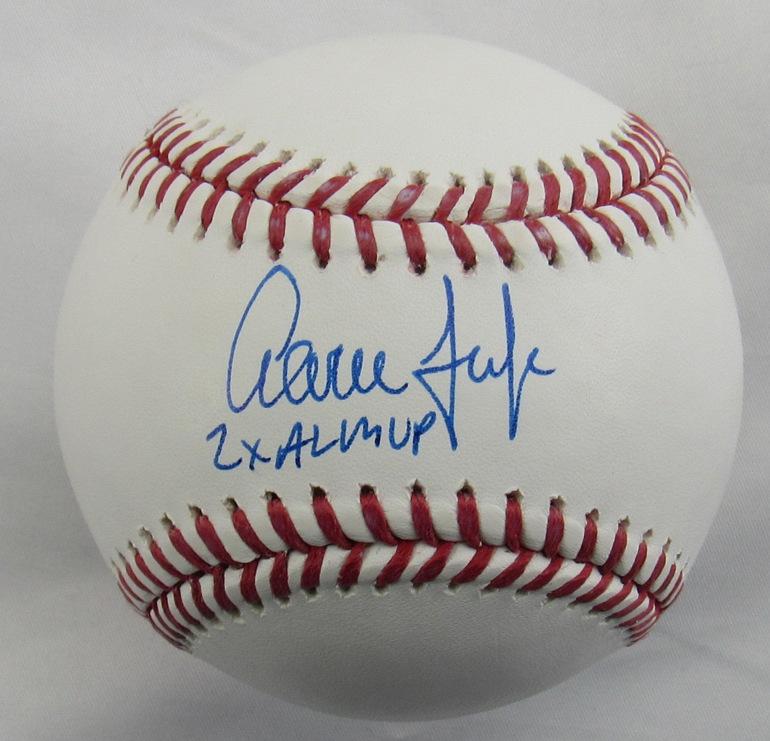 Add a true MVP to your memorabilia collection with this authentic Aaron Judge Signed Auto Rawlings Baseball w/ Insc, certified by PSA/DNA (AP55203). A towering figure in the world of baseball, Aaron Judge made history with the New York Yankees as a power-hitting outfielder and 2022 American League MVP. This officially signed Rawlings baseball isn't just a signature—it's a piece of Yankee excellence that pays tribute to one of the game’s most electrifying talents. Whether you're a passionate collector, a die-hard Yankees fan, or looking for that perfect gift, this signed ball captures a moment from one of baseball’s most exciting eras.