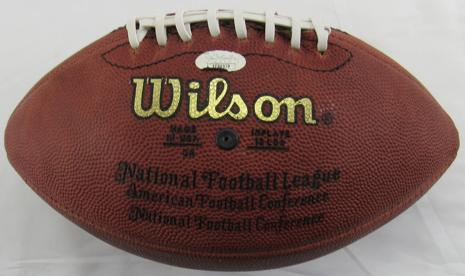 Own a piece of football history with this Barry Sanders Signed Wilson NFL Football! A true legend of the game, Barry Sanders is widely regarded as one of the greatest running backs in NFL history, celebrated for his agility, speed, and record-setting performances with the Detroit Lions. This authentic Wilson NFL football has been personally autographed by Barry Sanders and certified by JSA (EE90379) for authenticity, making it a must-have for dedicated collectors and passionate football fans.