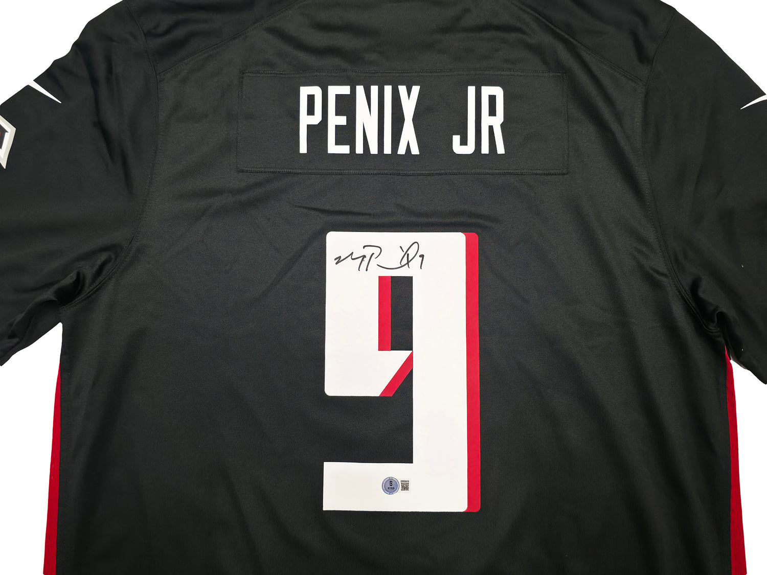 Celebrate the future of the Atlanta Falcons and own a piece of NFL history with this Black Nike Atlanta Falcons Jersey hand signed by Michael Penix Jr.. As a standout quarterback and first-round NFL Draft pick, Michael Penix Jr. is poised to become a major force in professional football. This jersey is an incredible collectible for Falcons fans and football memorabilia collectors alike.