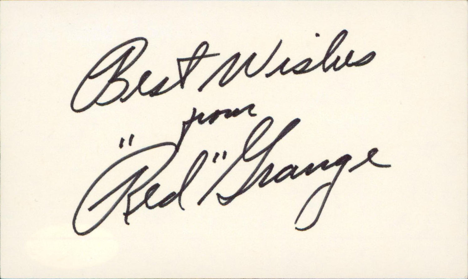 - Personally signed by Red Grange — Hall of Fame halfback and Chicago Bears icon